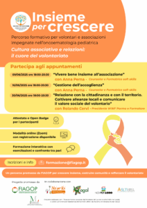 TEST “Insieme per crescere”, Percorso formativo per volontari e associazioni impegnate nell’oncoematologia pediatrica. Clicca qui per iscriverti